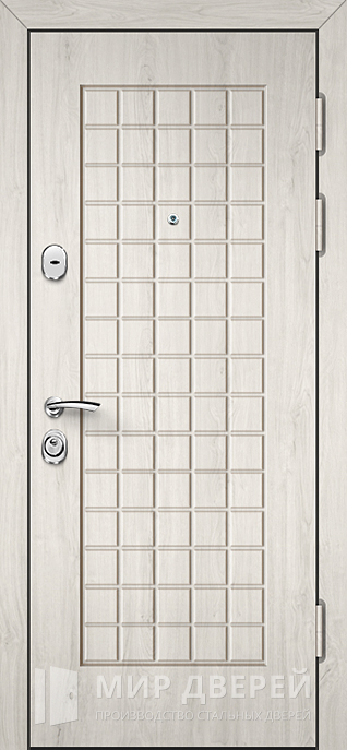 Наружная дверь со светлыми МДФ накладками №46, идеально подходящая для установки в частных домах, квартирах или офисах, предлагает элегантный дизайн в сочетании с высокой функциональностью. Внешняя и внутренняя отделка из МДФ с ПВХ покрытием в светлых тонах, включая белый, не только красиво смотрится, но и устойчива к внешним воздействиям, что делает дверь долговечной и легкой в уходе. Декоративное зеркало не только украшает дверь, но и приносит практическую пользу, визуально расширяя пространство.
